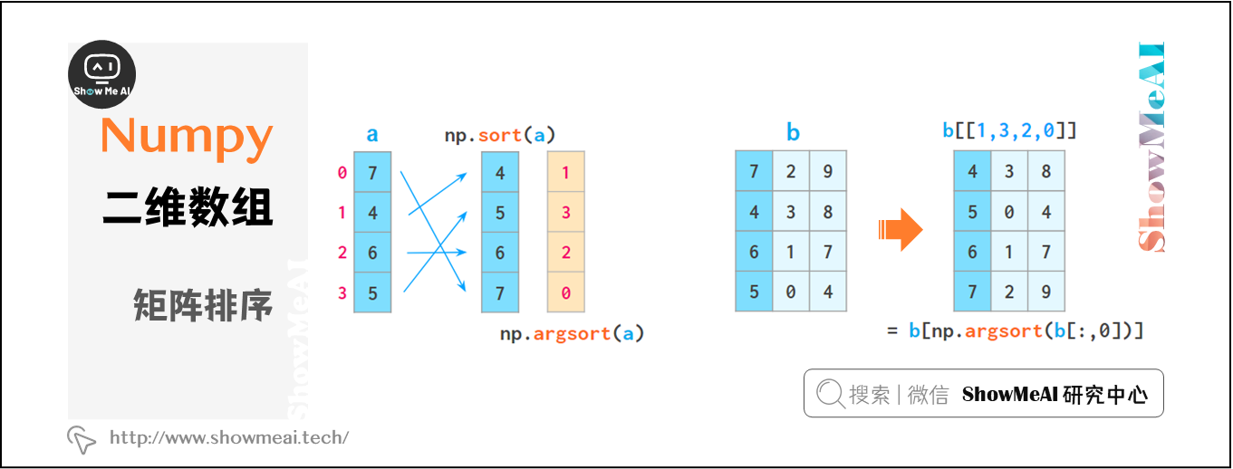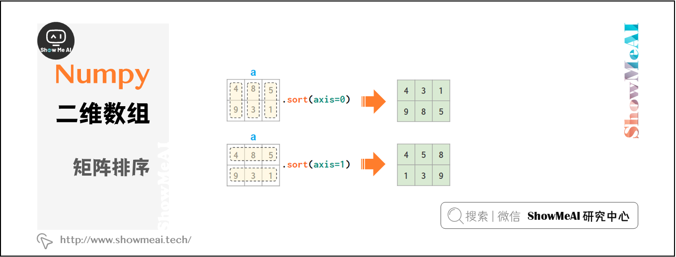 虽然在前文中,axis参数适用于不同函数,但在二维数组排序中影响较小: