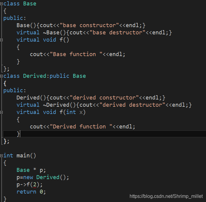 由b所指的内存中的虚函数表的f()的位置已经被Derive::f()函数地址所取代,于是在实际调用发生时,是Derive::f()被调用了。这就实现了多态。