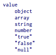 - 值(value)可以是双引号括起来的字符串(string)、数值(number)、true、false、 null、对象(object)或者数组(array)。这些结构可以嵌套。