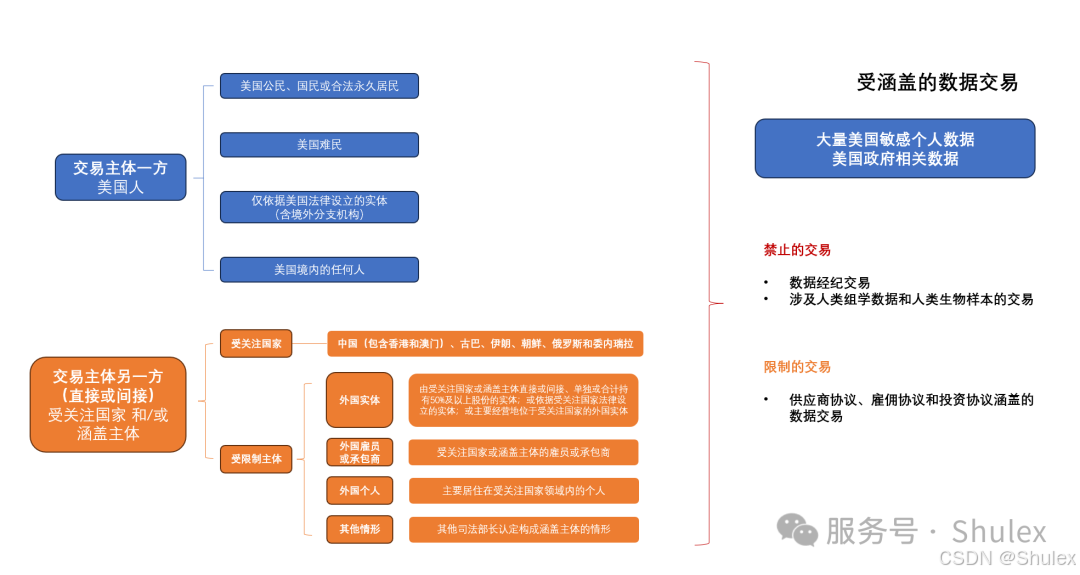 主体限制:禁止美国主体(公民、企业等)与“受关注国家”实体进行涉及敏感数据的交易;
