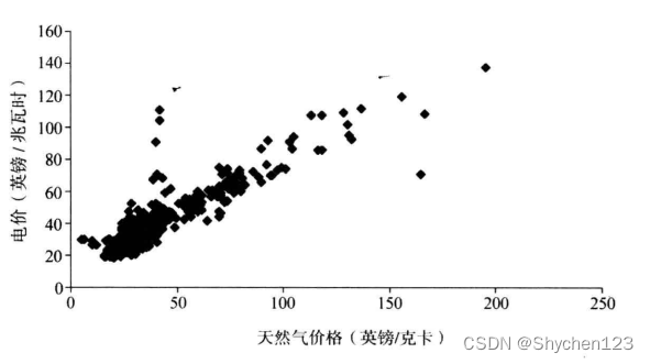 在商品概念介绍之后,作者便结合统计学方法对已有数据进行了分析,重点研究了电力、天然气、煤炭和碳排放之间的价差;初始估计值构造出的自洽相关性矩阵;天然气与电力的日度价格相关性;天然气与电力的日前价格(day- ahead price)之间关系;天然气远期价格的季节性以及天然气日前价格的走势。总结下来,既考虑了与替代品之间的关系,又考虑了自身受季节性变动的影响并在此基础上对整体价格走势进行了线性回归分析。这几个方面,我将来在分析特定商品时,也可以进行模仿借鉴。