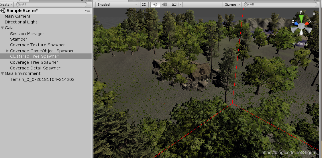 选择Coverage GameObject Spawner,点击脚本中的spawn按钮,可以自动在地形中添加预设的3D模型。