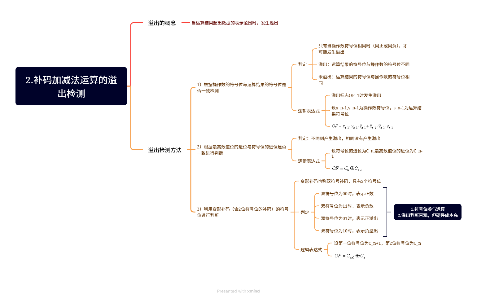 - 设x_n-1,y_n-1为操作数符号位,s_n-1为运算结果符号位: