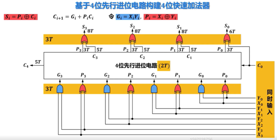 假设基本逻辑门传播延迟为1T,复合逻辑门传播延迟3T