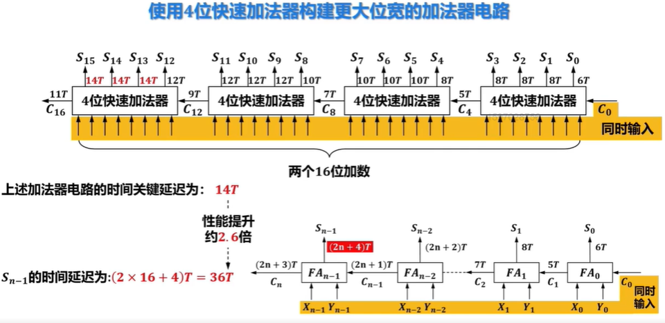 4位快速加法器比4位串行加法器性能提高了1.5倍