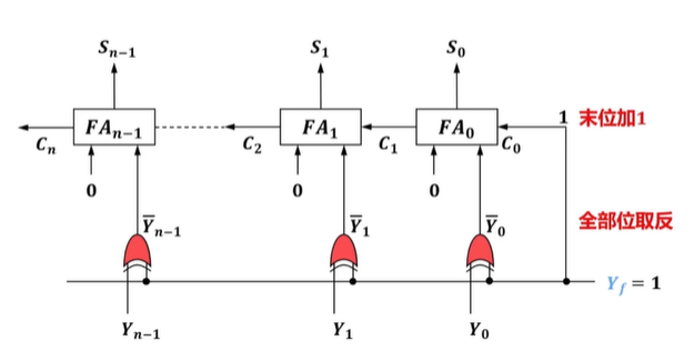 最后一层FA之间有进位依赖,可改用先行进位电路,可视为串行进位加法器