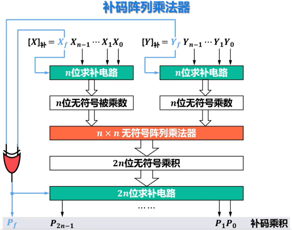 数值位转化为原码后利用无符号数阵列乘法器,得到的无符号乘积再转换成补码的数值位
