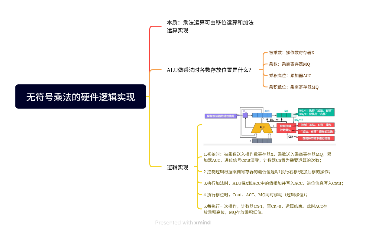 4)执行移位时,Cout、ACC、MQ同时移动(逻辑移位);