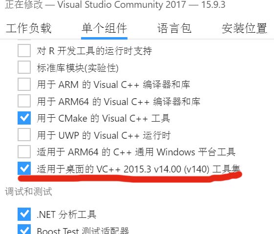 我用的vs版本是vs2017professional版本,并未安装所有的工具