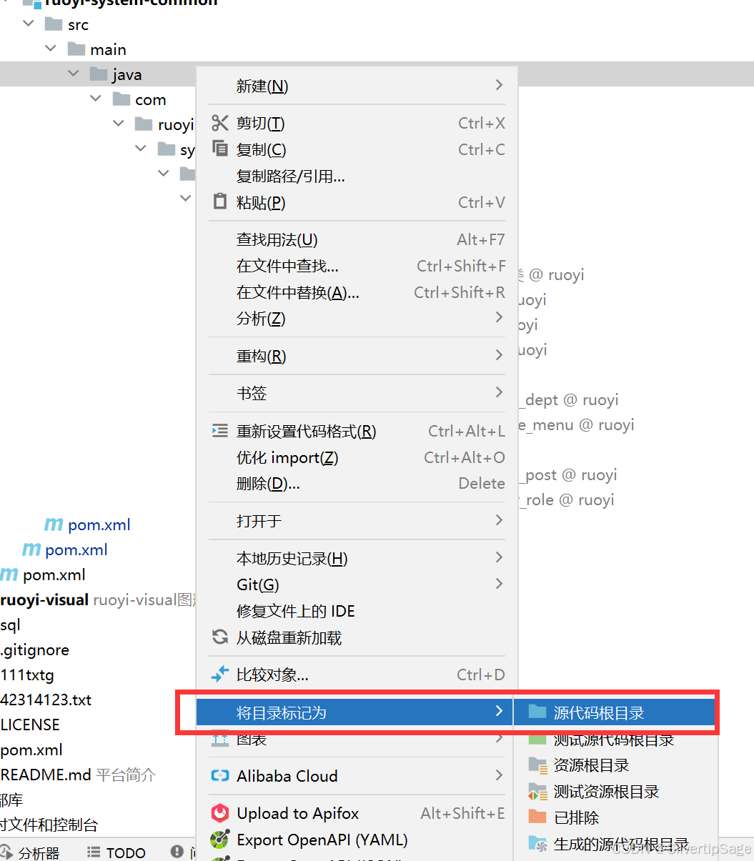 拆分若依项目下ruoyi-system模块的时候,java类标识变成灰色J,如下图: