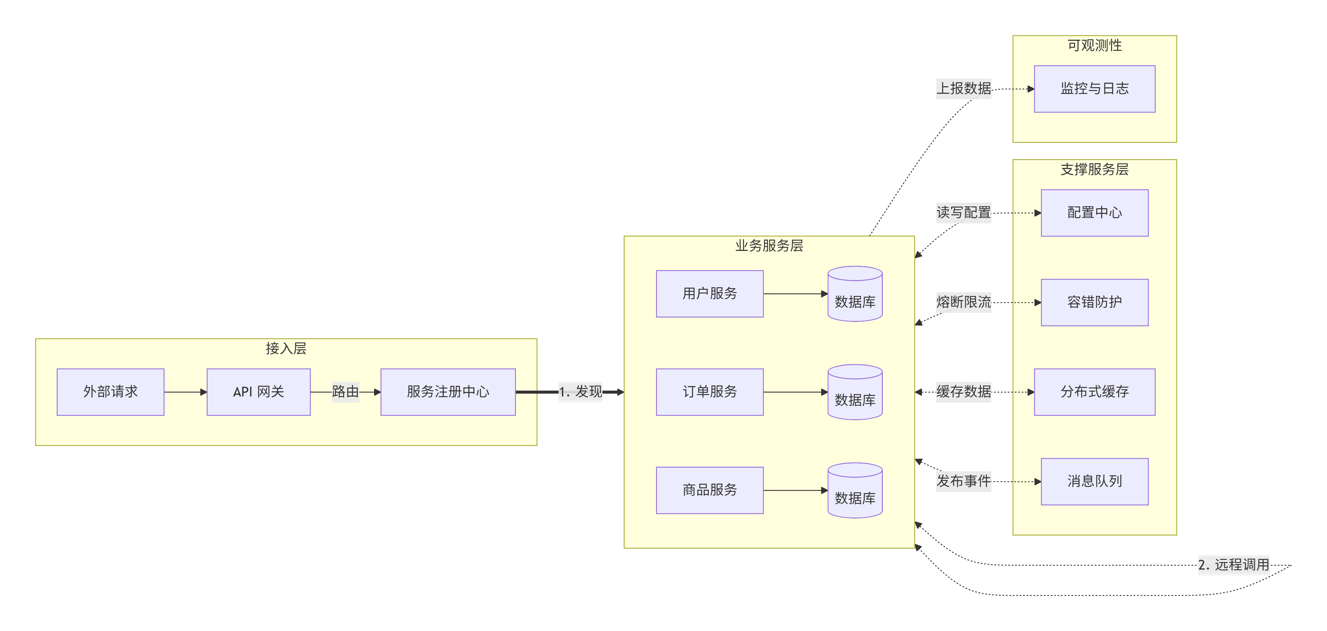 - 服务注册与发现 (Service Registry & Discovery):如Nacos,提供服务实例的自动注册与健康检查,实现服务消费者对提供者的动态感知与寻址,是服务间通信的基础。