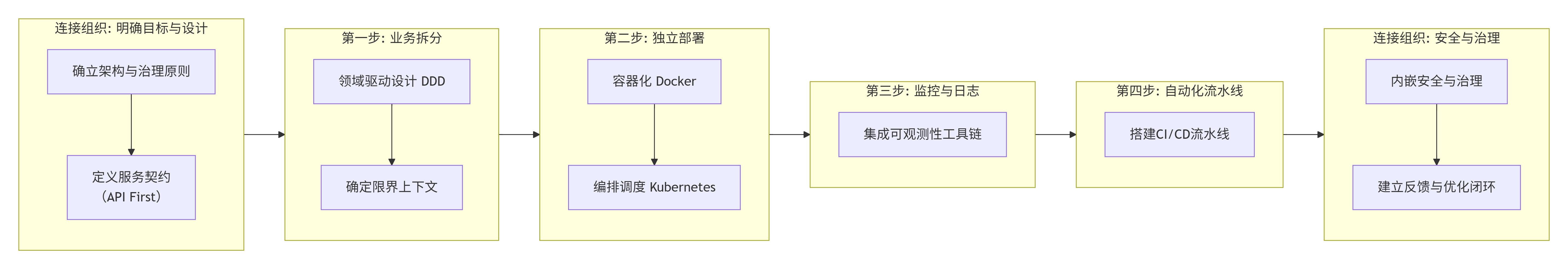 - 业务拆分:按领域驱动设计(DDD)划分服务边界。