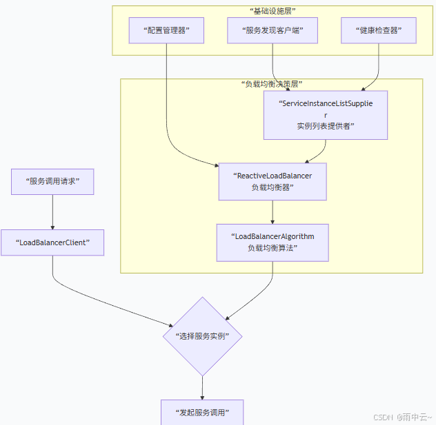 - LoadBalancerClient / BlockingLoadBalancerClient (负载均衡客户端):面向开发者的高层API门面与调用入口。它封装了底层复杂的响应式负载均衡逻辑,为使用