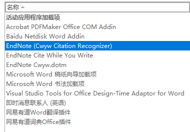 没有Endnote选项,选择添加,找到安装路径中EndNote Cwyw.dll文件。