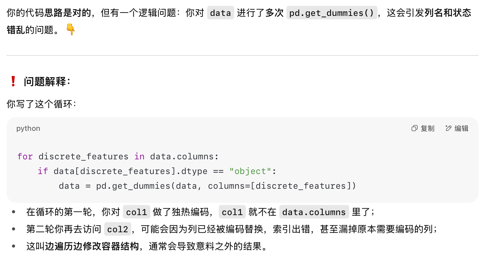 一开始是这么写的,但是不对,pd.get_dummies()最好不要放在循环里