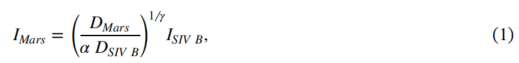 通过对比阿波罗-SIVB人造月球撞击(产生33米直径坑,Rajšić等人2021年),我们可独立估算撞击体动量。π群坑径标度理论表明,特定动量撞击体在月球较低重力下(gMoon/gMars)^(-μ/(2+μ))≈15%(μ=0.4,Holsapple 1993年)会形成更大坑径。这意味着S0794a与阿波罗-SIVB撞击体具有相当的垂直动量。采用Daubar等人(2018年)提出的坑径D与动量I的γ=0.32幂律指数,我们可建立: