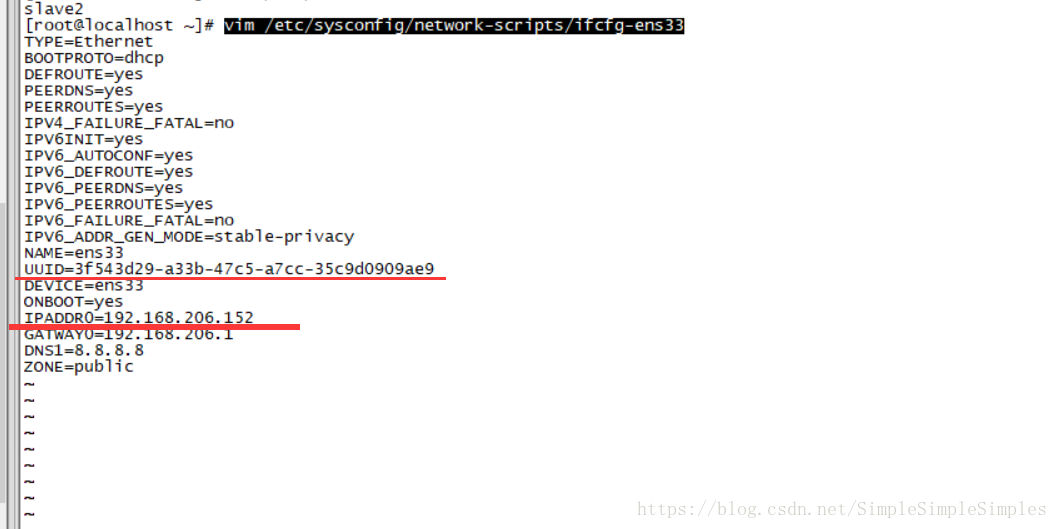 [root@localhost ~]# vim /etc/sysconfig/network-scripts/ifcfg-ens33