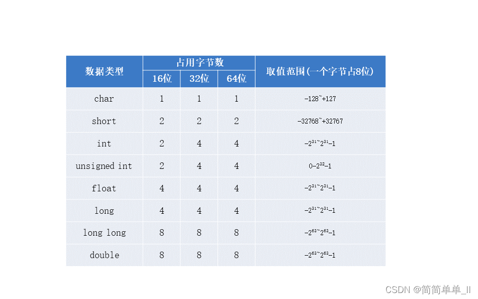 数据类型的作用:编译器预算对象(变量)分配的内存空间大小。