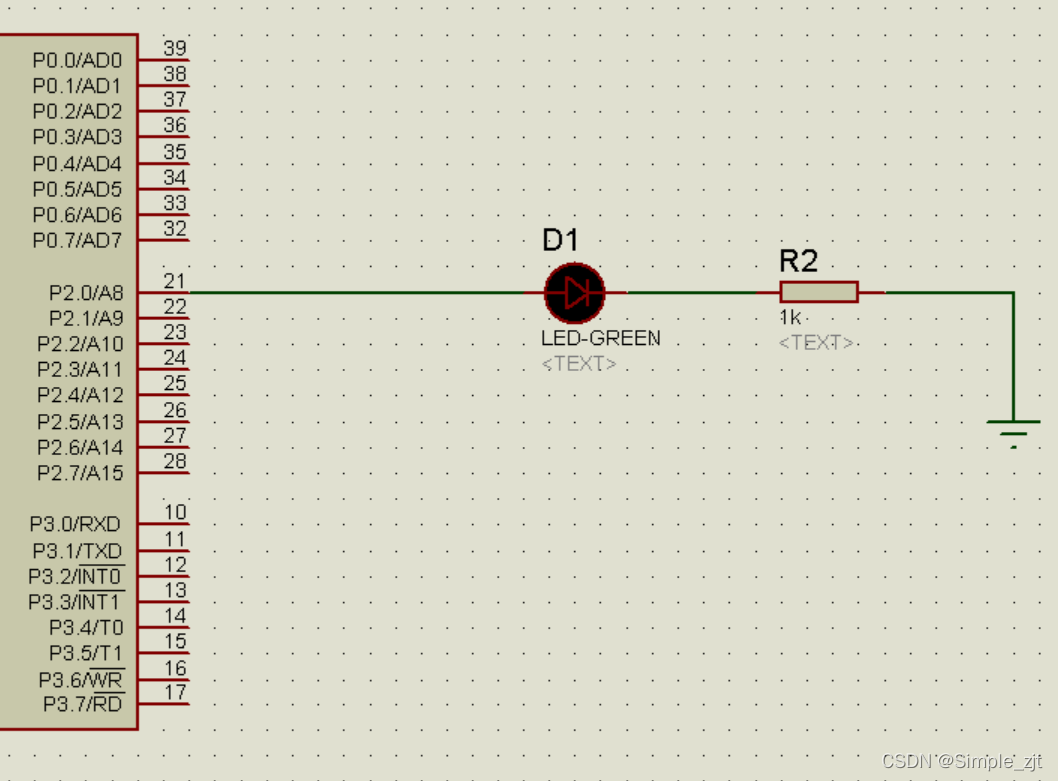 如图所示,端口P2.0为使用端口,控制LED灯的点亮