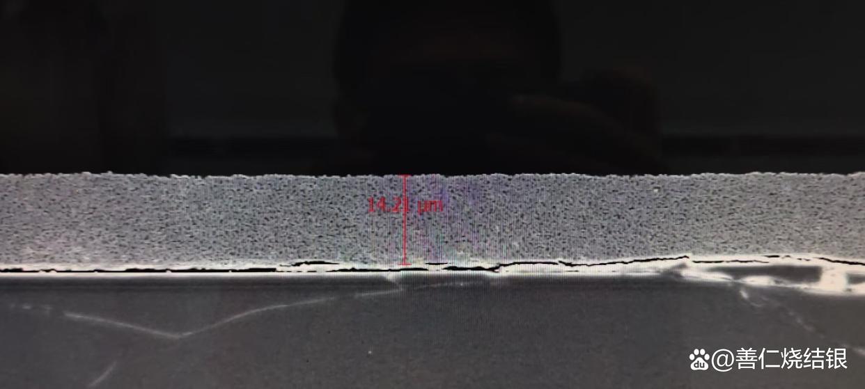 烧结后银层形成多孔桥状网络,孔隙率约2%-5%,既降低体电阻(接近纯银的90%),又通过纳米银颗粒桥接缓解热应力,提升可靠性。