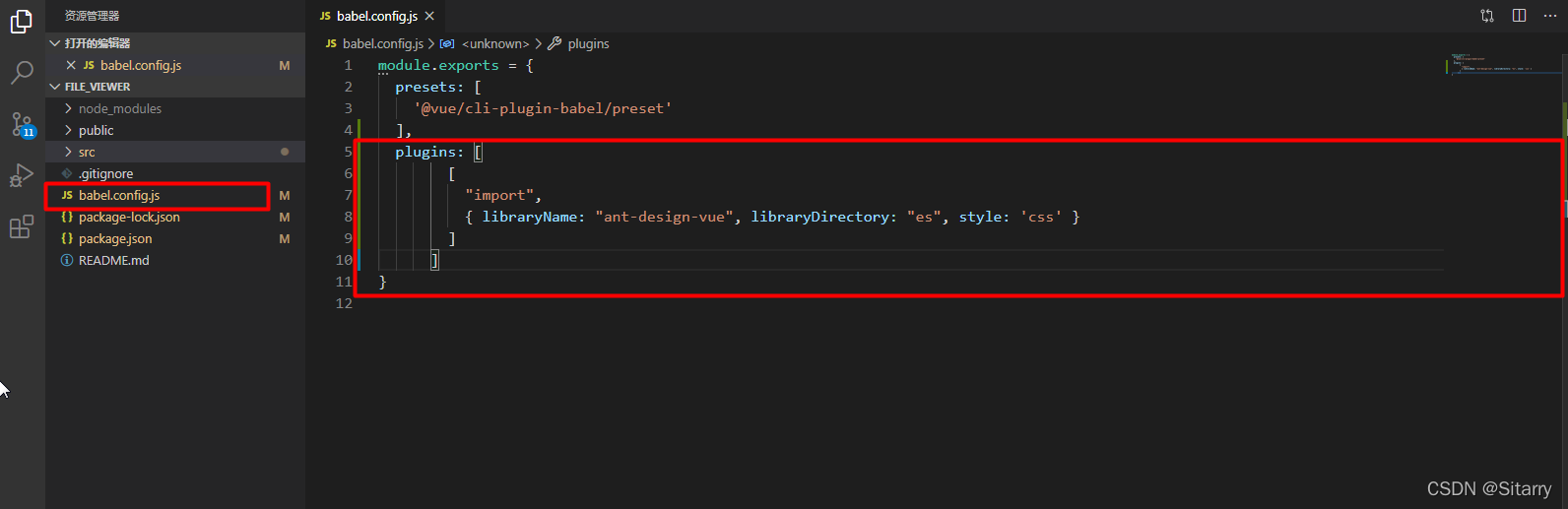 2.1 在 babel.config.js 配置文件中加入下面的配置代码,其中 style 的值可以是 true: 表示自动引入样式文件,默认为 less,css: 表示引入 css 样式文件,less: 表示引入 less 样式文件