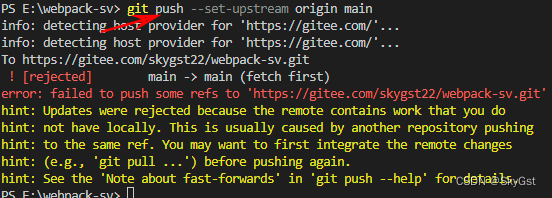 然后提交代码 git push --set-upstream origin main (第一次提交用这个方法);