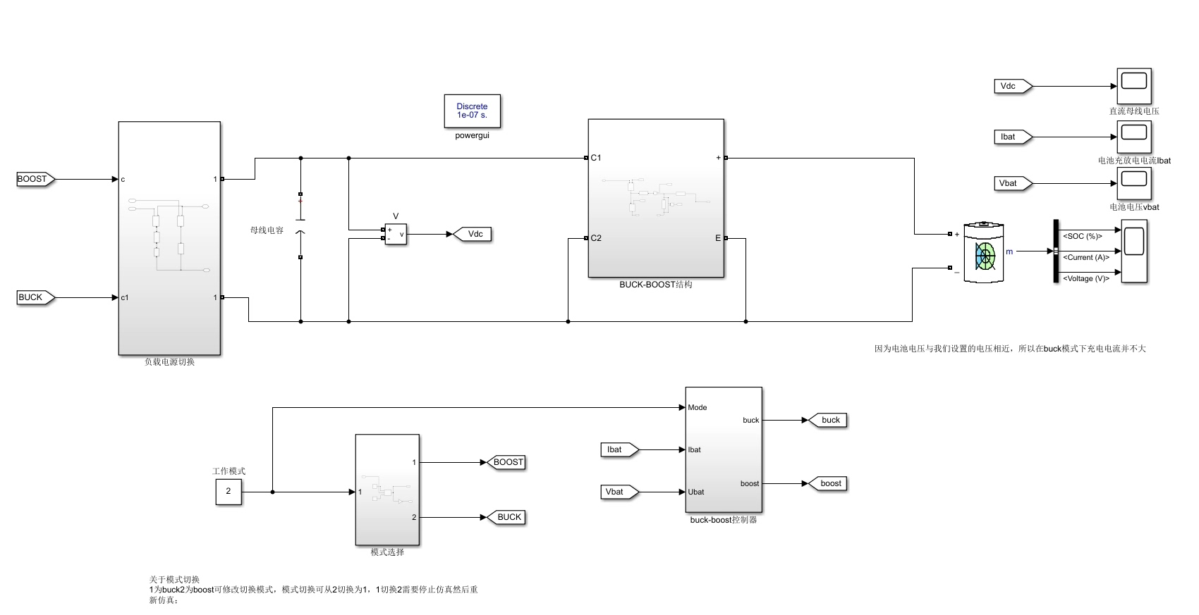 buck-boost仿真模型,可实现双向充放电(附加说明文档)