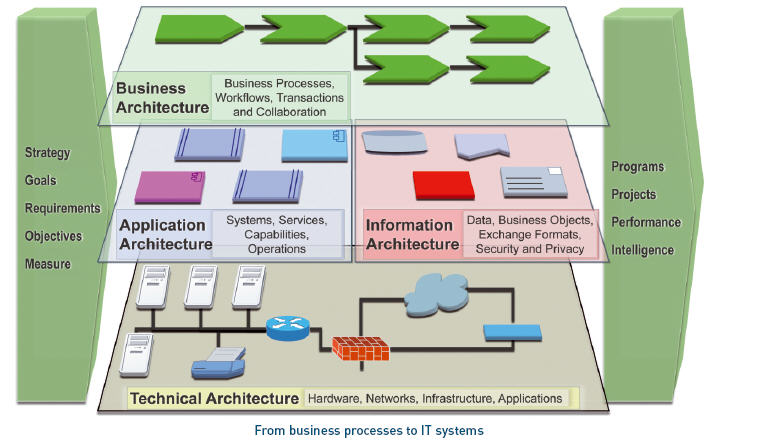 - 企业连续统一体:EA 专业人员和涉众的资源库,例如,模型、解决方案模式,和其他可以在企业架构实现和裁减过程中用作构建块的资产。