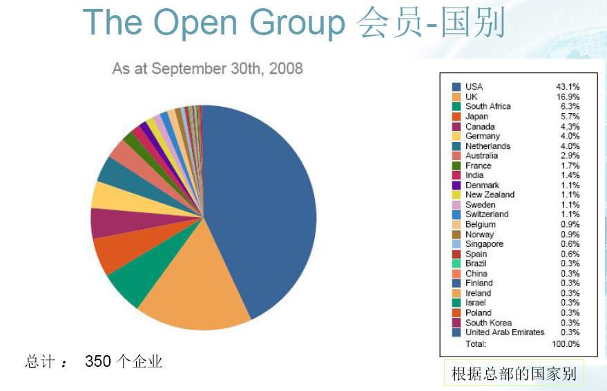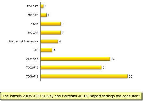 根据The Open Group的2009年调研报告,各类企业架构框架的市场占用率如下: