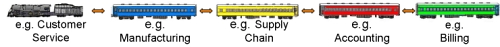 火车工程师在做设计时,他不会去关心每节车厢里装的是什么,他们只需要关心这些车厢一节节连接在一起就好了,而把每节车厢中的具体事情交由相应的责任人即可。将一节节车厢连起来就形成了一个隐式的(或抽象的)流程,好比一个灵活的流程应该有这样的能力:当一节车厢被替换成另一节车厢时不会对整列火车造成什么影响。