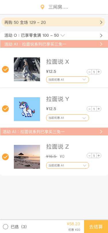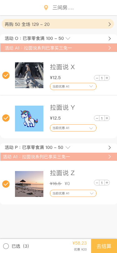 还有一种特殊情况是,商品 Z 同时享受 A1 和 P,A1 的计算权重高于 P,此时界面上看起来就会是这样的:
