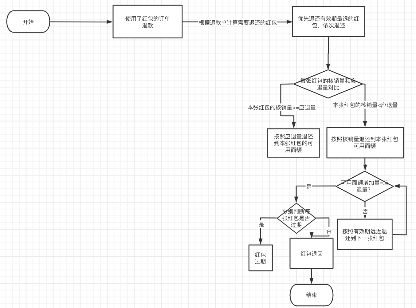 举个例子:用户的红包可以叠加使用,但是购买了多个商品。退款之前,用户有新获得的红包,还有账户下有红包到达了过期时间。那么我们考虑退货时,红包的退回逻辑:
