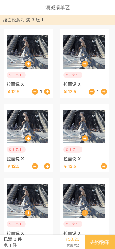 - 低价购买商品主要有单个商品金额直减或者加购商品直减,分别可以提高用户转化或者客单价。
