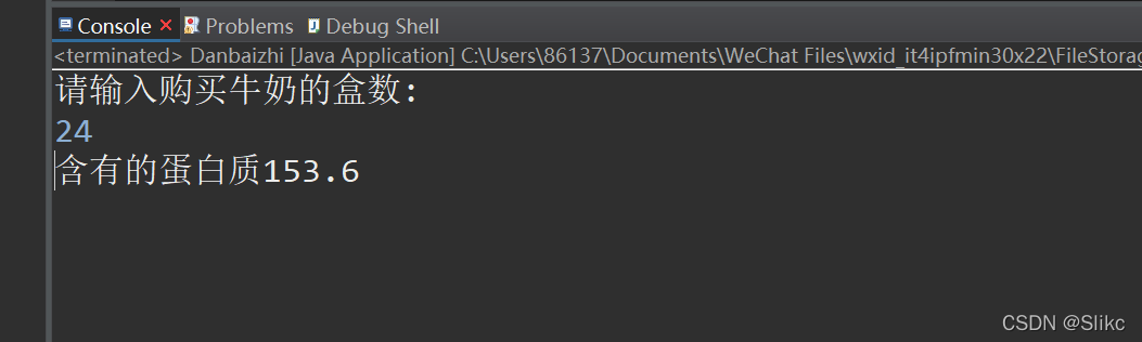 System.out.println("袋牛奶含有的蛋白质:"+a*b);//输出含有的蛋白质数量