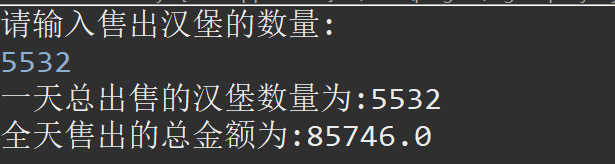 System.out.println("一天总出售的汉堡数量为:"+ a);//输出汉堡数量