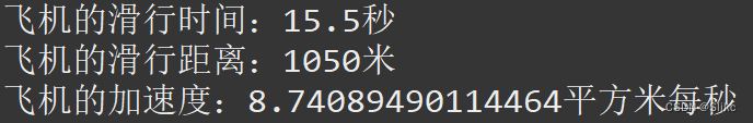 System.out.println("飞机的滑行距离:"+b+"米");//输出信息