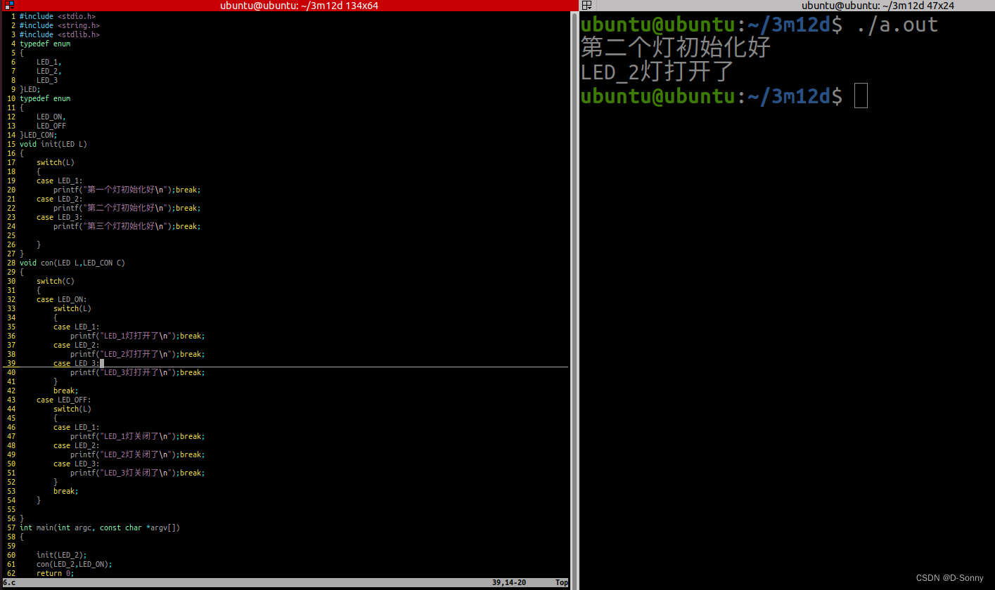 文章讲述了C语言中结构体大小计算、枚举类型使用、初始化函数和灯控制,以及验证数据存储(大端/小端)的示例。