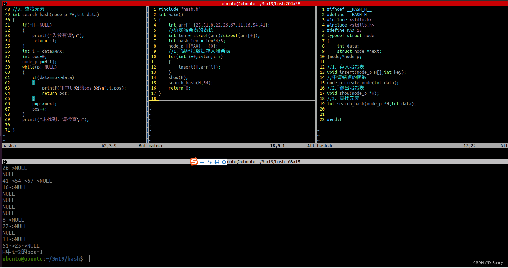 哈希表的代码写完,写出给出关键字,找到该关键字在哈希表(指针数组)中下标的位置,以及在链表中的位置。