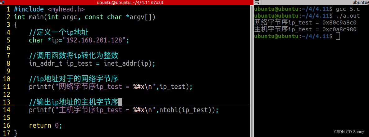 功能:将ip地址的点分十进制数据转换为网络字节序的整数