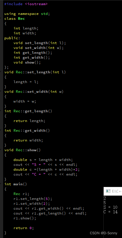 1、定义一个矩形类Rec,包含私有属性length,width,有以下成员函数: