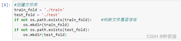 将一组不同品种的猫的图片,放在 data 目录下,用 Python 编写程序,在 data 路径下创建 train (用于模型训练)和 test(用于模型验证)子目录,并按照 train:test=8:2 的比例随机分。