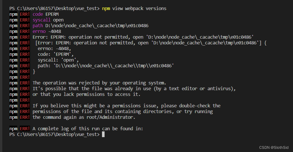 问题:error: EPERM: operation not permitted, open ‘D:\node\node_cache\_cacache\tmp\c184ef70‘