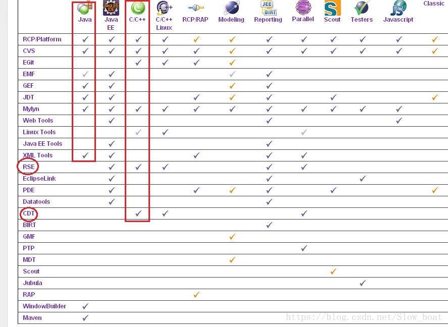 可以看到集成了 CDT 的 eclipse 多了RSE组件,所以要除了CDT外还要单独下载RSE