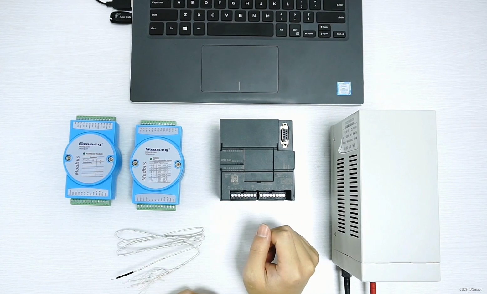 准备的实验设备有:S7-200 SMART型PLC、M-1001和M-2101模块、SDS-1001转换器、K型热电偶以及一个直流电源。