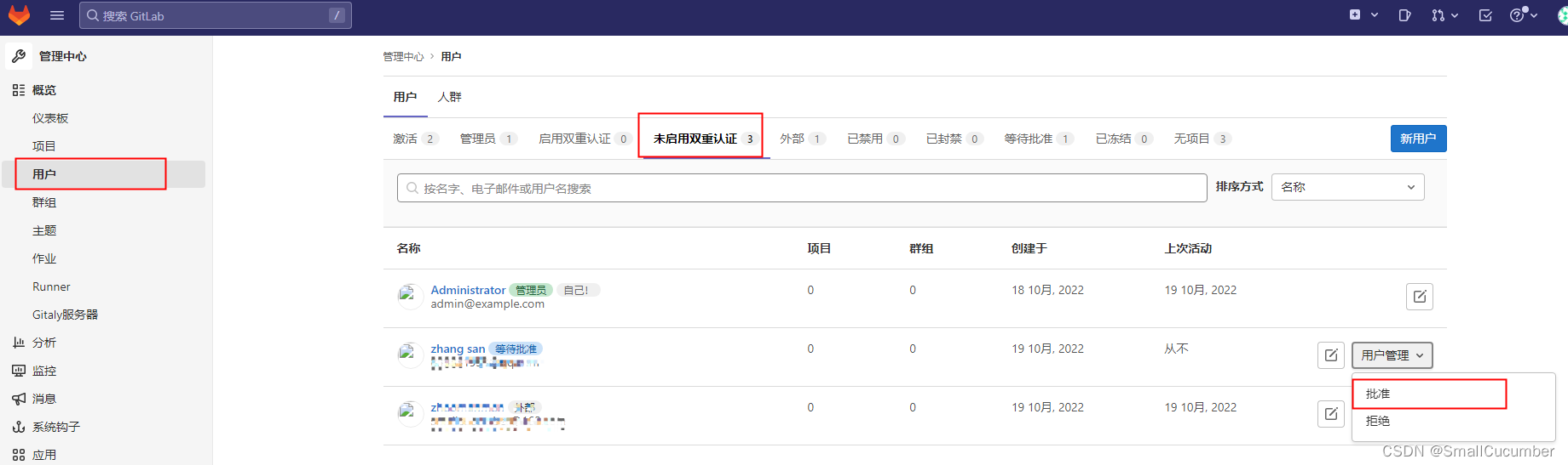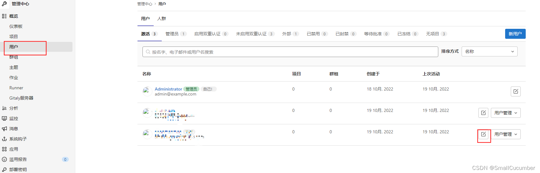 也可以在配置GitLab》用户》新用户。新增新用户。