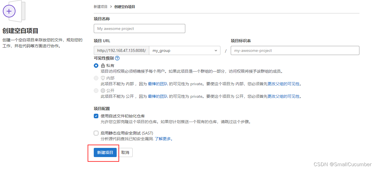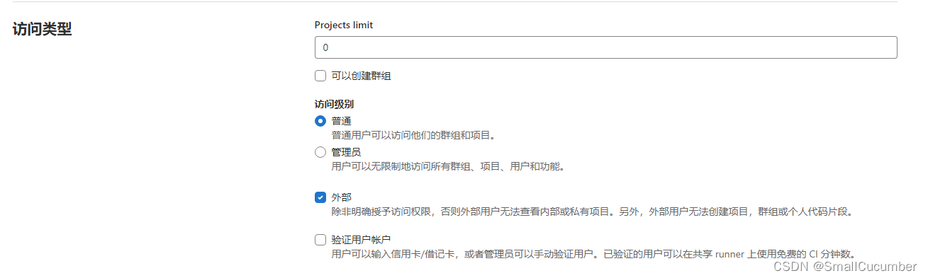 配置用户外部用户无法创建项目,群组或个人代码片段。