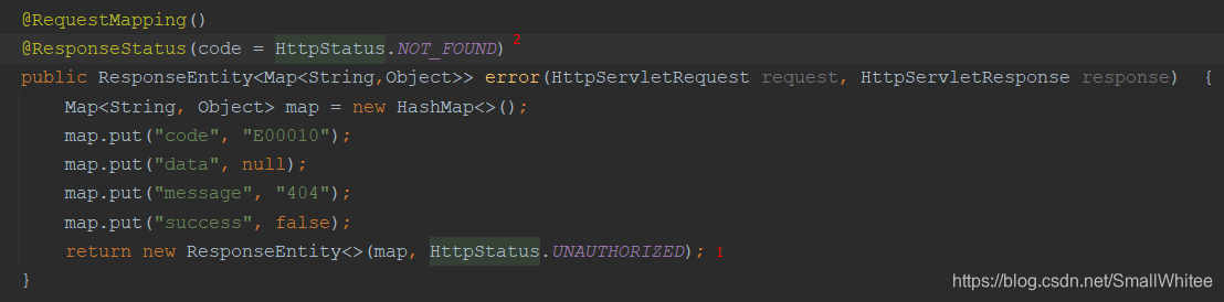 当返回的是ResponseEntity时,会忽略@ResponseStatus的状态码设置,也就是优先级更高