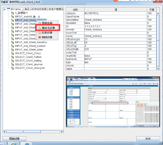 对新增客户这个模块的功能测试,逻辑判断,对象改名等等结合到一个脚本中