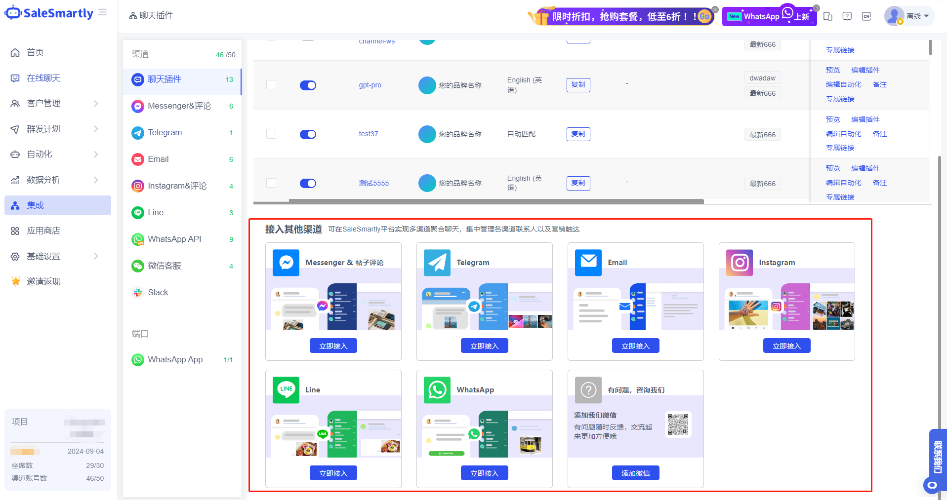 1.集成多个渠道的实时聊天