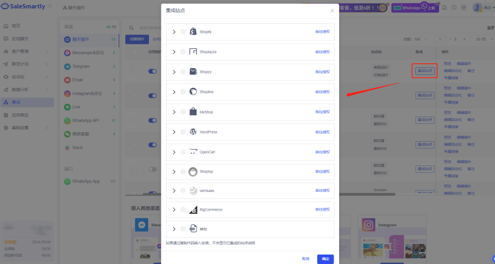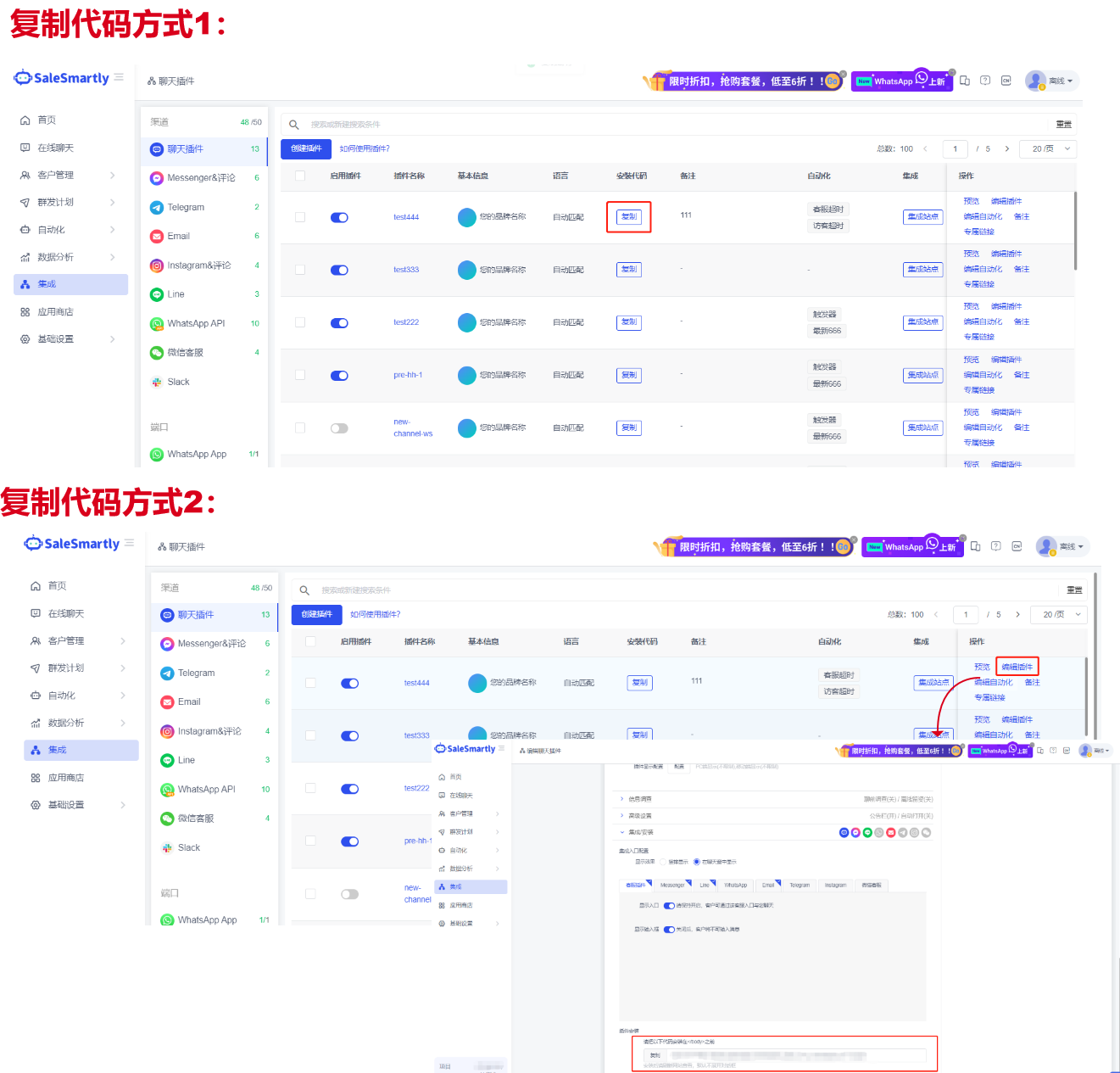 4. 引流和增加销售机会:可以在网页中显示多个聊天挂件,包括客服插件、Messenger、Line、Whatsapp等,帮助你引流和增加销售机会。
